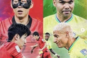 韩国队交手巴西队海报:孙兴慜、李刚仁、维尼修斯、卡塞米罗出镜