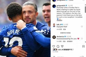 本场比赛埃弗顿新援格拉利什首发出战送出两次助攻,赛后也当选英超官方球迷票选全场最佳。格拉利什在社媒晒出与队友庆祝的照片,配文写道:“这是多棒的一个周日!完成主场首秀并且取得赛季首胜的感觉太好了!这座球场、这里的球迷们、这里的激情!感谢球迷们对我的欢迎,真的难以置信!”